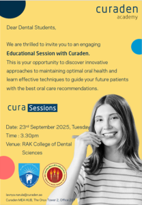 RAK College of Dental Sciences is privileged to host an engaging educational session conducted by the Curaden Academy Scientific Team, titled “Building Healthy Smiles: A Comprehensive Approach to Lifelong Oral