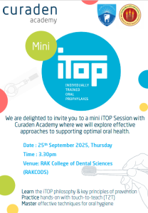 RAK College of Dental Sciences is pleased to host an interactive Mini I Top Lecture and Workshop exclusively for our 3rd-year students on Thursday, September 25, 2025. This engaging session