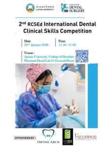 Who participated at the 2nd RCSEd International Dental Clinical Skills Competition from various dental institutions, organized by the Royal College of Surgeons of Edinburgh – Faculty of Dental Surgery and hosted at Ajman University on January 23, 2026, securing an impressive second place with an exceptional performance.